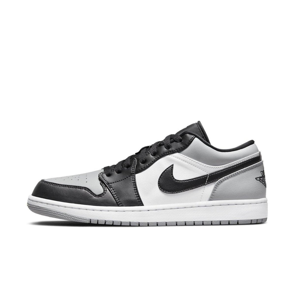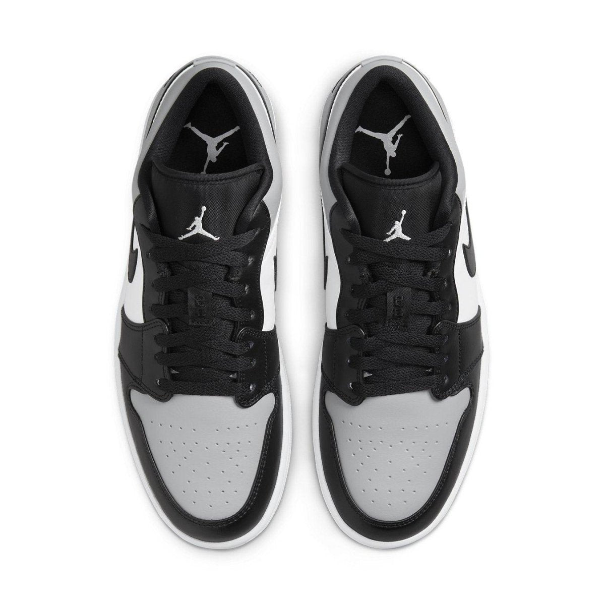 L'Air Jordan 1 Low "Shadow Toe" presenta una tavolozza familiare ispirata alla colorazione OG che ha debuttato nel 1985. La silhouette a basso profilo sfoggia una tomaia interamente in pelle in una miscela neutra di bianco, nero e grigio fumo chiaro. Oltre all'inconfondibile Swoosh in pelle nera, gli elementi del branding includono un'icona Jumpman in cima alla linguetta e un logo Wings retrò ricamato sul rivestimento del tallone. Alla base della sneaker c'è una robusta suola in gomma, dotata di un'unità tallone Air-sole incapsulata in una zeppa in poliuretano.