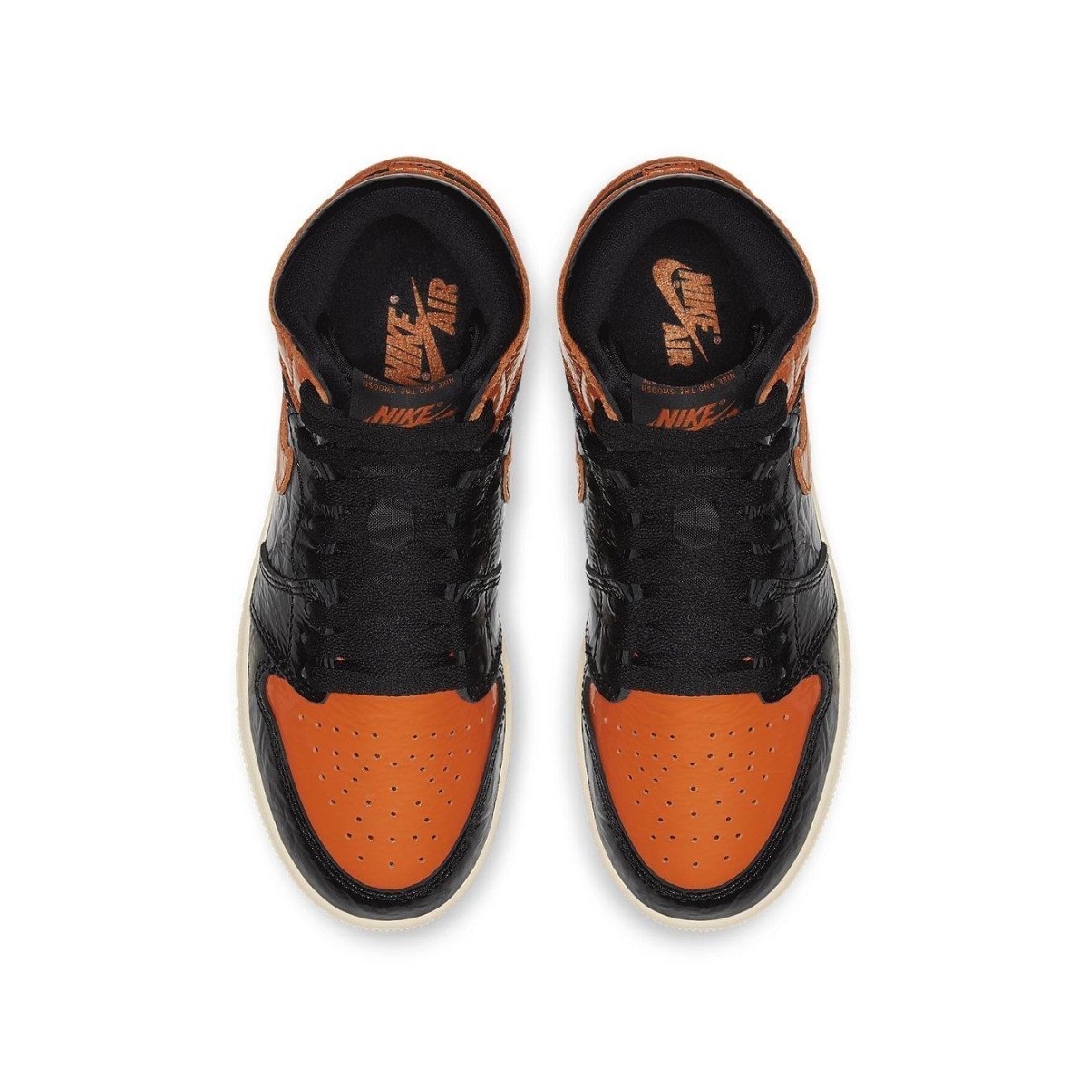 L'Air Jordan 1 GS "Shattered Backboard 3.0" è una versione giovanile di una delle tonalità Air Jordan 1 non originali più ricercate. La colorazione "Shattered Backboard 3.0" è ispirata a un gioco di esibizione internazionale durante la prima stagione NBA di Michael Jordan e ha una combinazione di colori simile ai suoi predecessori con alcune lievi modifiche cruciali. La pelle standard è stata sostituita con vernice stropicciata nelle prime due edizioni della scarpa. Il pannello centrale, l'avampiede e il colletto alla caviglia sono rivestiti in pelle lucida nera, con pelle arancione a contrasto sul logo Swoosh sopra il pannello centrale, così come la punta traforata e il pannello laterale.