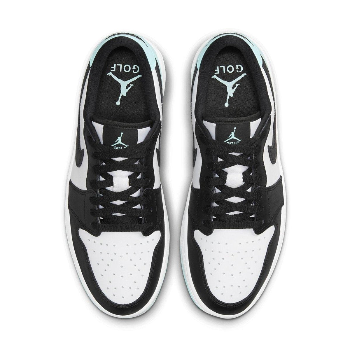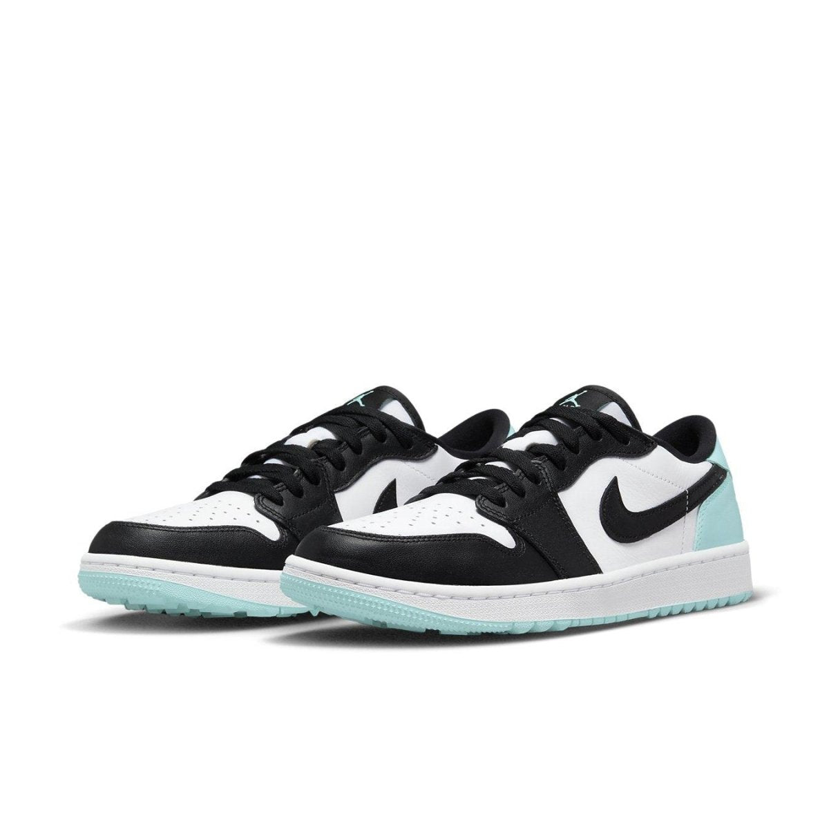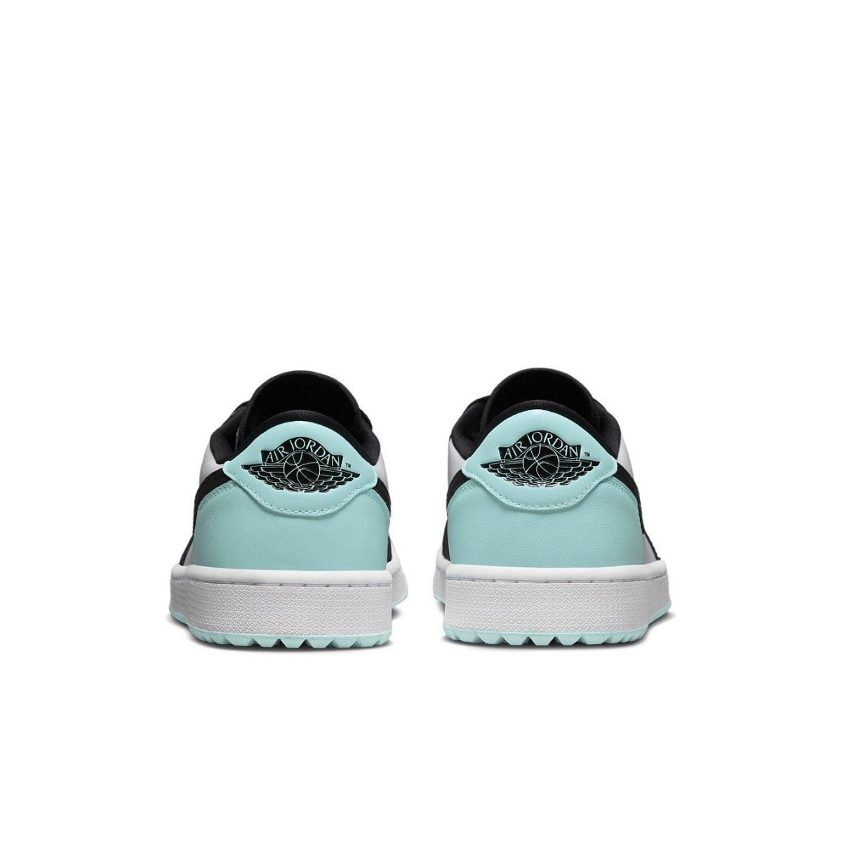 Onorando la silhouette iconica che ricorda l'originale Jordan 1 Low, l'AJ1 Low Golf è dotata di una suola modificata per migliorare l'aderenza sul campo da golf. A prima vista, il suo retaggio classico è conservato, evidenziato dallo schema di colori "Black Toe" che omaggia il suo passato leggendario. La struttura si caratterizza per una base in pelle bianca immacolata impreziosita da sovrapposizioni nere nitide e l'inconfondibile Swoosh Nike, mentre una vivace tonalità turchese "Copa" circonda il tallone e il risvolto, impreziosendo anche il logo Jumpman di colore. Il design si completa con una unità suola bianca e "Copa", concludendo il modello con una finitura accattivante e al contempo familiare.