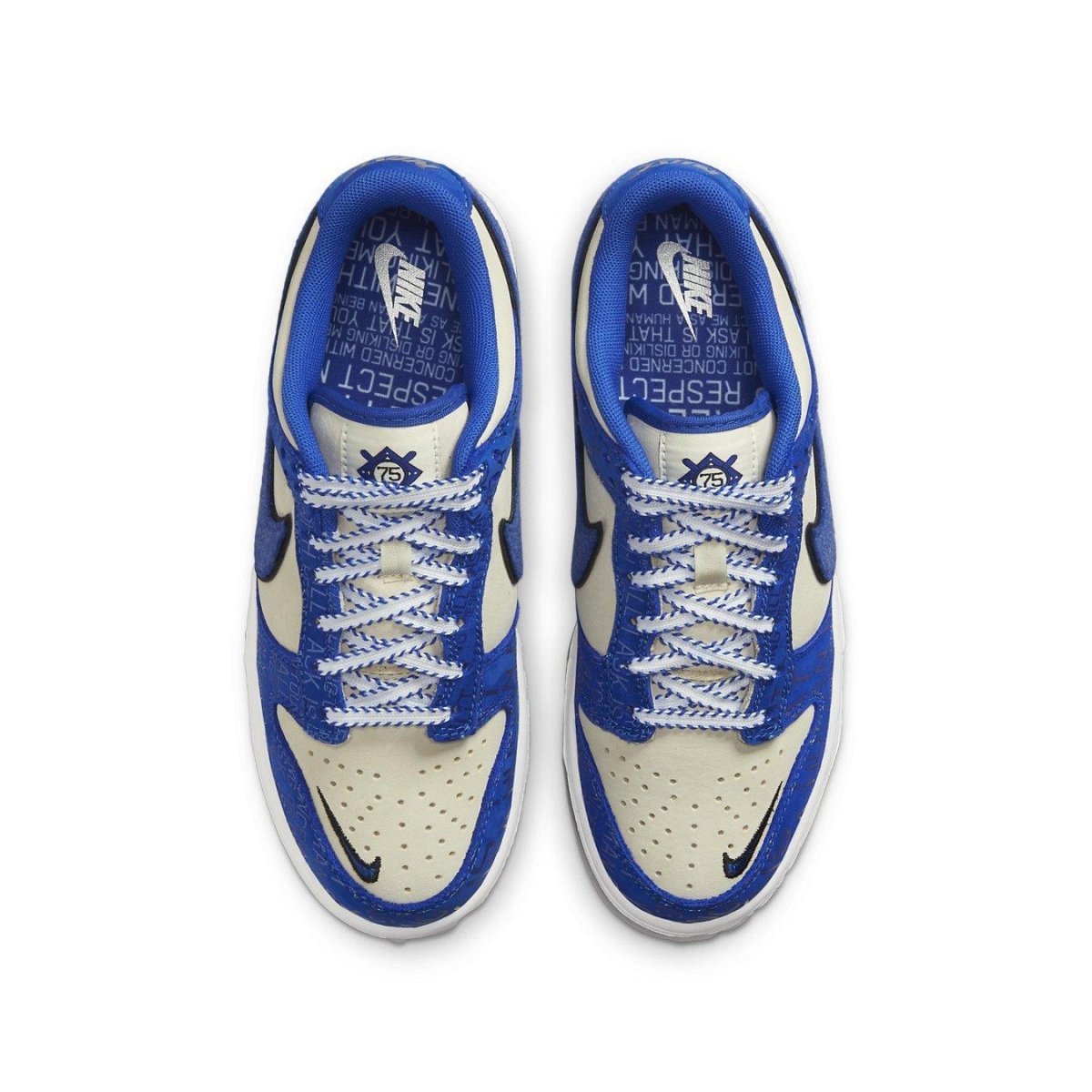 Nike rilascia la Nike Dunk Low Jackie Robinson (GS) per gli studenti delle scuole elementari per celebrare il 75° anniversario da quando Jackie Robinson ha iniziato in prima base per i Brooklyn Dodgers. Vestita con un blocco di colore dei Dodgers, la Nike Dunk Low Jackie Robinson (GS) per le scuole elementari presenta dettagli unici come il suo numero #42 sui talloni e la citazione: "Non mi interessa se ti piaccio o non ti piaccio. Tutto ciò che ho chiedo è che mi rispetti come essere umano" sulle solette.