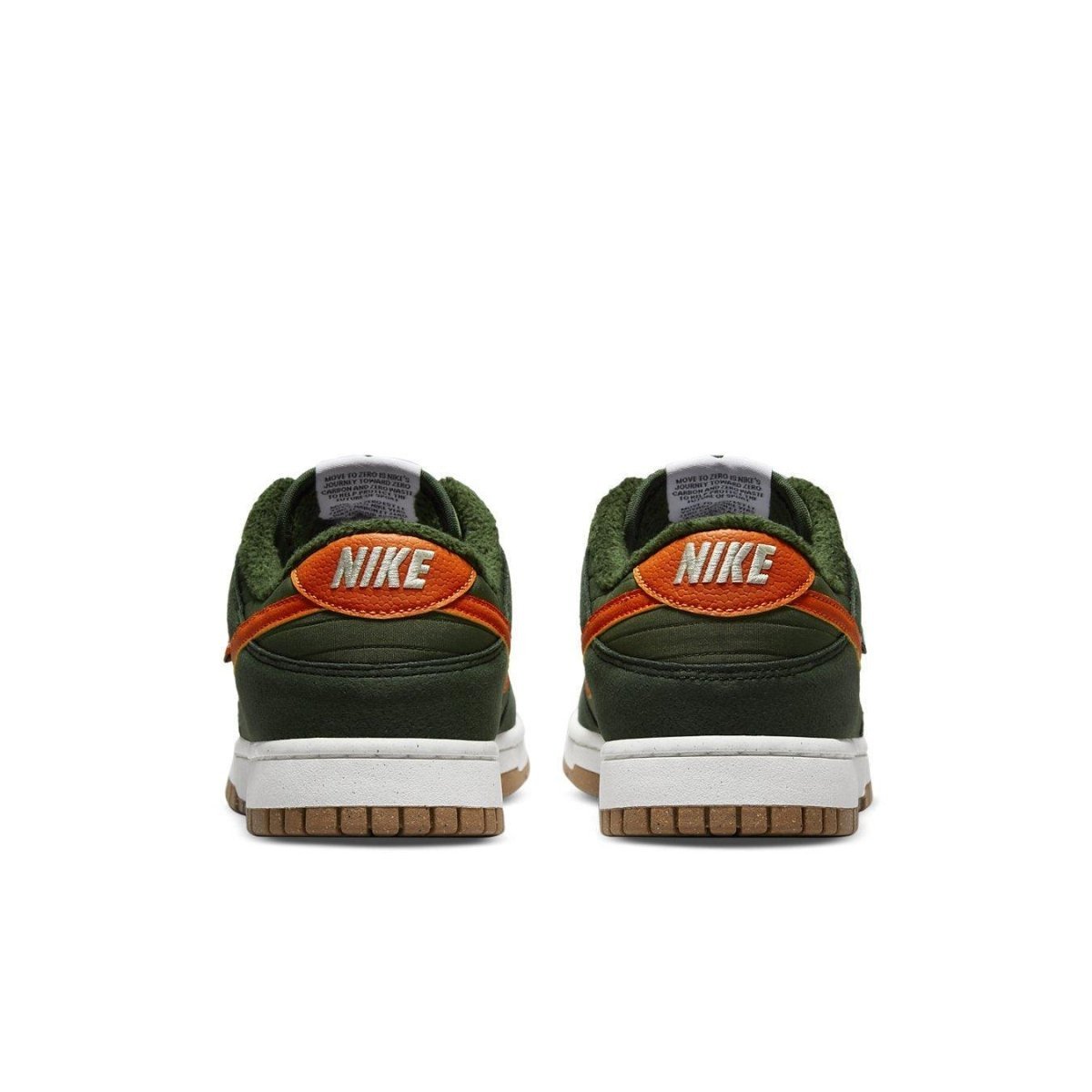 La Nike Dunk Low Next Nature "Sequoia", che ha debuttato come parte della linea "Toasty", è una versione invernale dello stile originale. La tomaia è rivestita in pile e presenta strati esterni in pelle scamosciata sintetica su una base in tessuto trapuntato composta al 100% da poliestere riciclato. Lo Swoosh in pelle testurizzata e una linguetta sul tallone con logo Nike ricamato sono accentati con accenti arancioni luminosi. Un emblema a girandola sull'etichetta tessuta della linguatta denota una costruzione sostenibile, con il 20% di contenuto riciclato in peso.