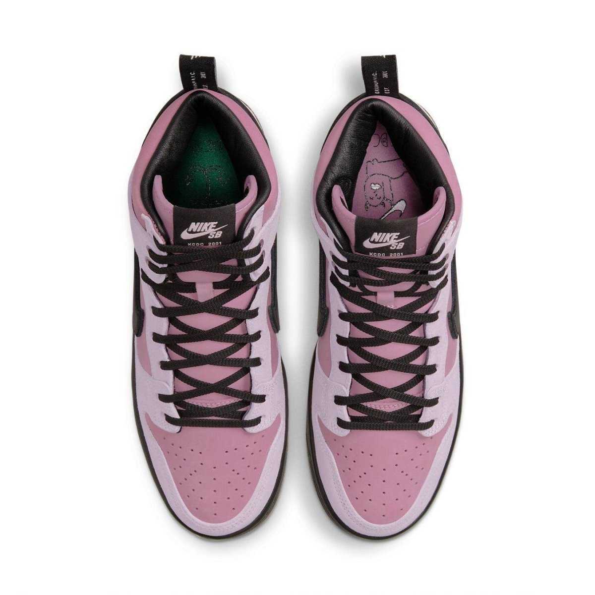 KCDC, uno dei negozi di skate più famosi di Brooklyn, ha collaborato con Nike nel 2022 per rilasciare le KCDC x Nike Dunk High SB Pink. La collaborazione con lo skateshop di Amy Ellington è un sontuoso paio realizzato in pelle scamosciata setosa, vestito in molteplici tonalità di rosa con uno Swoosh nero, lacci e intersuola per rendere il design radicato e indossabile. Costruito con l'ammortizzazione Nike leader del settore sotto i piedi, viene aggiunta una linguetta sul tallone per facilitare l'inserimento e lo sfilamento.