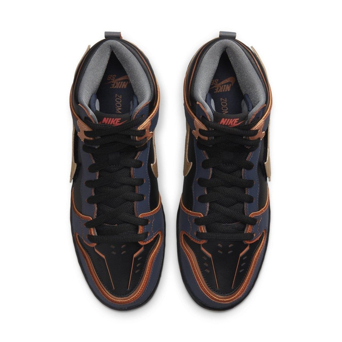 Il "Project Unicorn Banshee Norn" di Gundam x Nike Dunk High SB viene lanciato come parte di una più ampia linea di collaborazione in onore delle Olimpiadi estive di Tokyo 2021, traendo ispirazione dalla lunga serie di fantascienza iniziata con la serie TV anime del 1979, "Mobile Vestito Gundam.' L'RX-0 Unicorn Gundam 02 Banshee è citato in questa coppia, che ha una parte superiore in pelle nera con sovrapposizioni in pelle blu accentate con finiture in rame. L'estetica della tuta Gundam è replicata tramite linee angolari sulla punta e sul colletto, oltre a Swoosh rivisti e sostituibili.