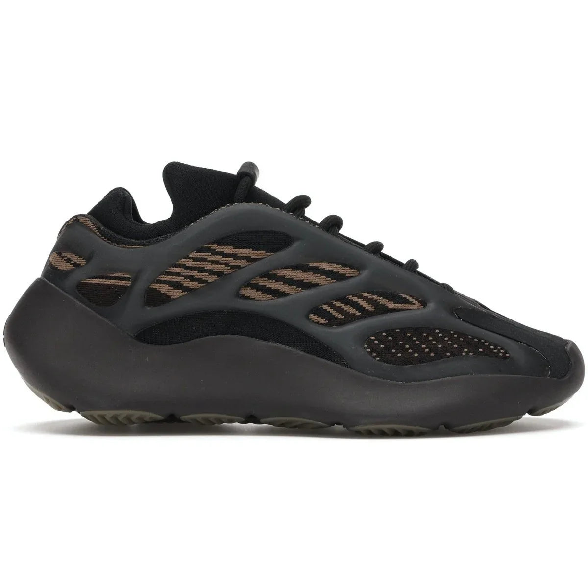 Con le Yeezy 700 V3 Clay Brown, Yeezy torna alla tavolozza dei toni della terra. Con il suo aspetto prevalentemente nero, il Clay Brown ricorda l'Alvah. Invece di una tomaia completamente neutra, presenta toni della terra più delicati che forniscono contrasto in tutto il design. La Yeezy 700 V3 Clay Brown è composta da una tomaia in engineered mesh nero con striature marrone chiaro che scorrono lungo il lato e da una caratteristica unità a gabbia trasparente. Questo design futuristico è completato da una spessa intersuola in schiuma EVA, puntale rinforzato e dettagli 3M sull'avampiede.
