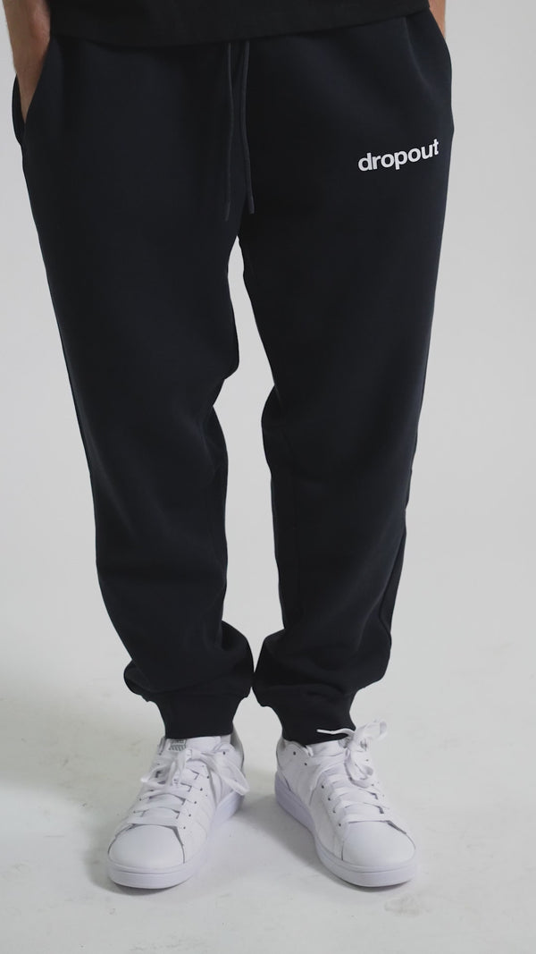 Simple, clean, black T‑shirt with a white Dropout logo across the chest. The fit is loose and boxy, so it hangs straight and doesn’t cling to your body. The fabric is thick and soft, so it feels strong but still comfortable to wear all day.