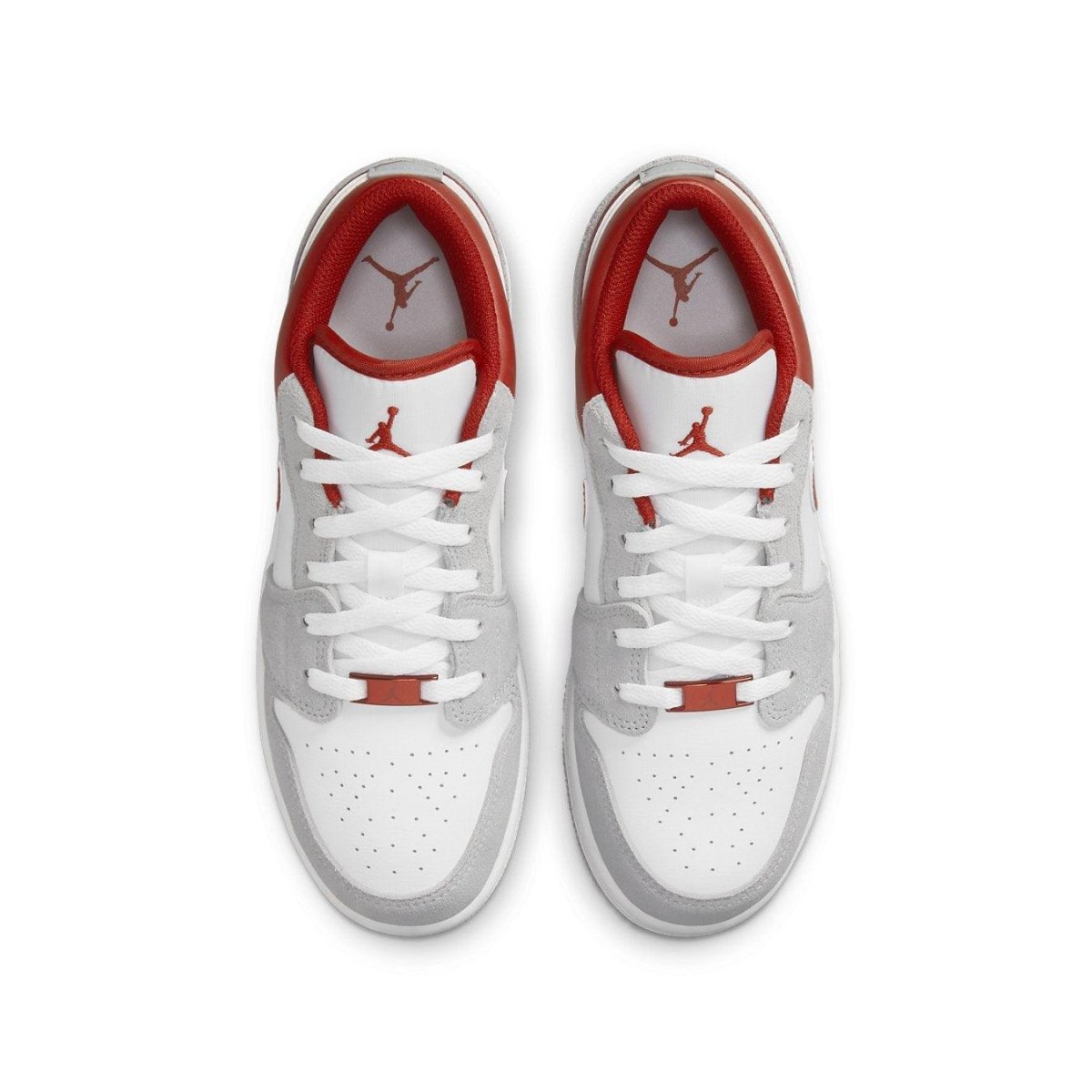L'Air Jordan 1 Low SE "Light Smoke Grey Gym Red" si presenta in una tavolozza neutra con un tocco di colore audace. La silhouette classica presenta una tomaia in pelle bianca con rivestimenti in pelle scamosciata grigia e un colletto imbottito a taglio basso in cremisi. La stessa tonalità è ripetuta sugli elementi del marchio della sneaker, tra cui uno Swoosh in pelle, un'icona Jumpman sulla linguetta e un logo Wings ricamato sul rivestimento del tallone. Gli utensili standard per la suola preformata abbinano i fianchi bianchi con una suola in gomma grigia.