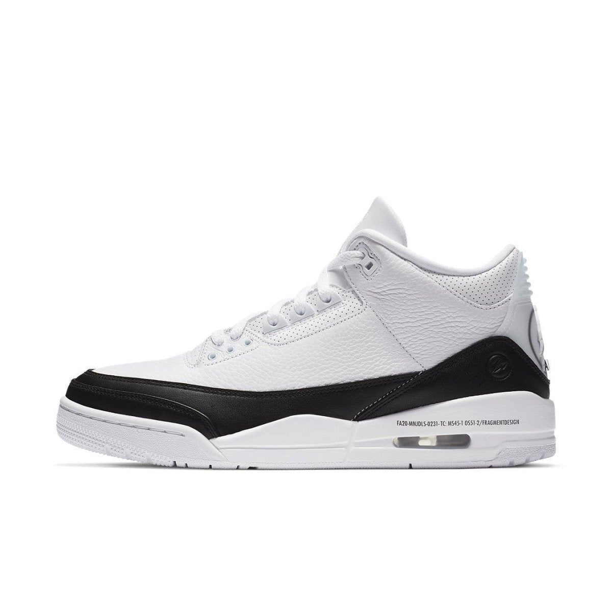 Questa AJ3 completa la collaborazione Fragment x Jordan, insieme ad altri due pezzi di calzature e una linea di abbigliamento, mettendo l'attenzione per i dettagli di Fujiwara su una delle forme Jordan più amate. La tavolozza di colori "Orca" in bianco e nero rende omaggio al suo precedente lavoro Nike, mentre una SKU completamente esplicita sull'intersuola collega l'arte e il commercio dello streetwear. Per creare un'impronta piacevole ma discreta, un logo Fragment stampato appare sopra l'intersuola e di nuovo sotto un logo Jordan trasparente sul tallone.