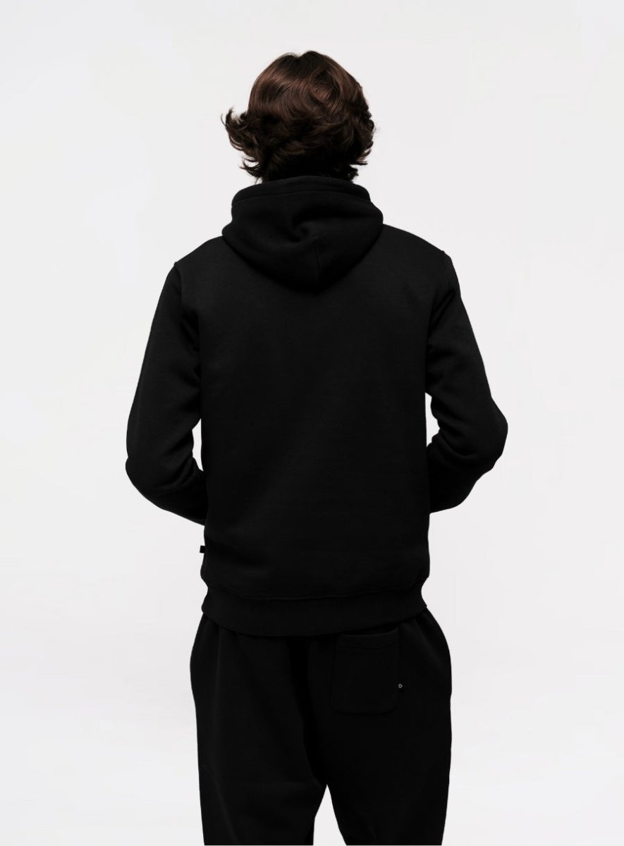 - Classic black hoodie that is versatile and pairs with most outfit choices.