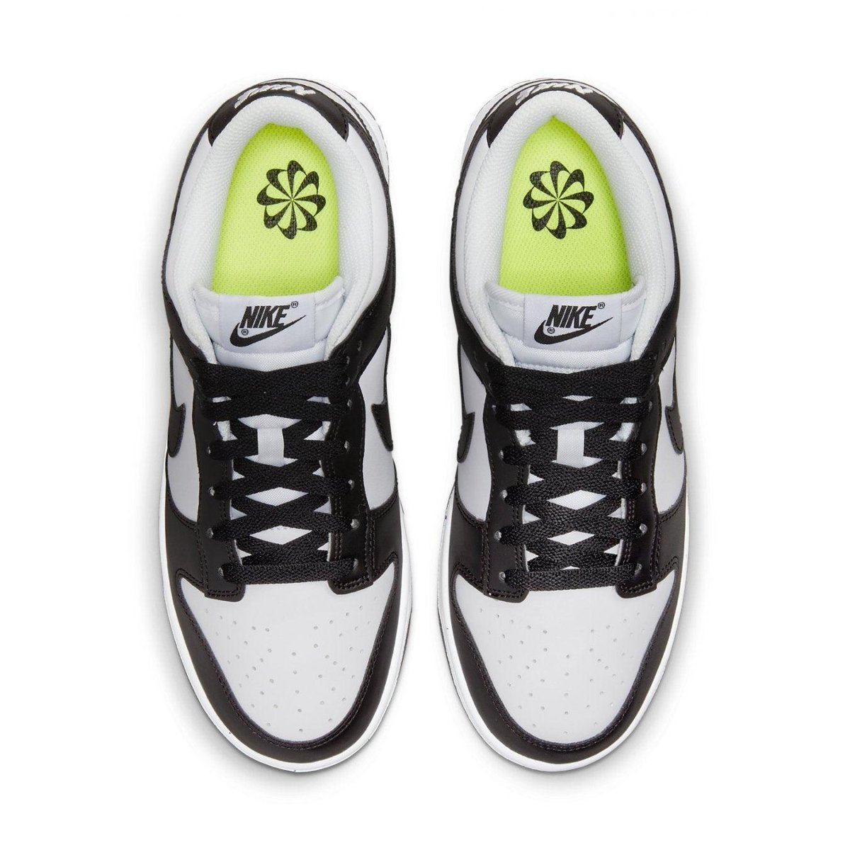 Nike ha reinventato un classico che mantiene l'integrità originale riducendo al minimo l'effetto utilizzando almeno il 20% di materiali riciclati in peso. La Nike Dunk Low, realizzata in pelle sintetica, porta in strada l'eleganza tradizionale dei baller e la vita di base. Per completare il look, gli emblemi della girandola "Move to Zero" appaiono sulle solette Volt.