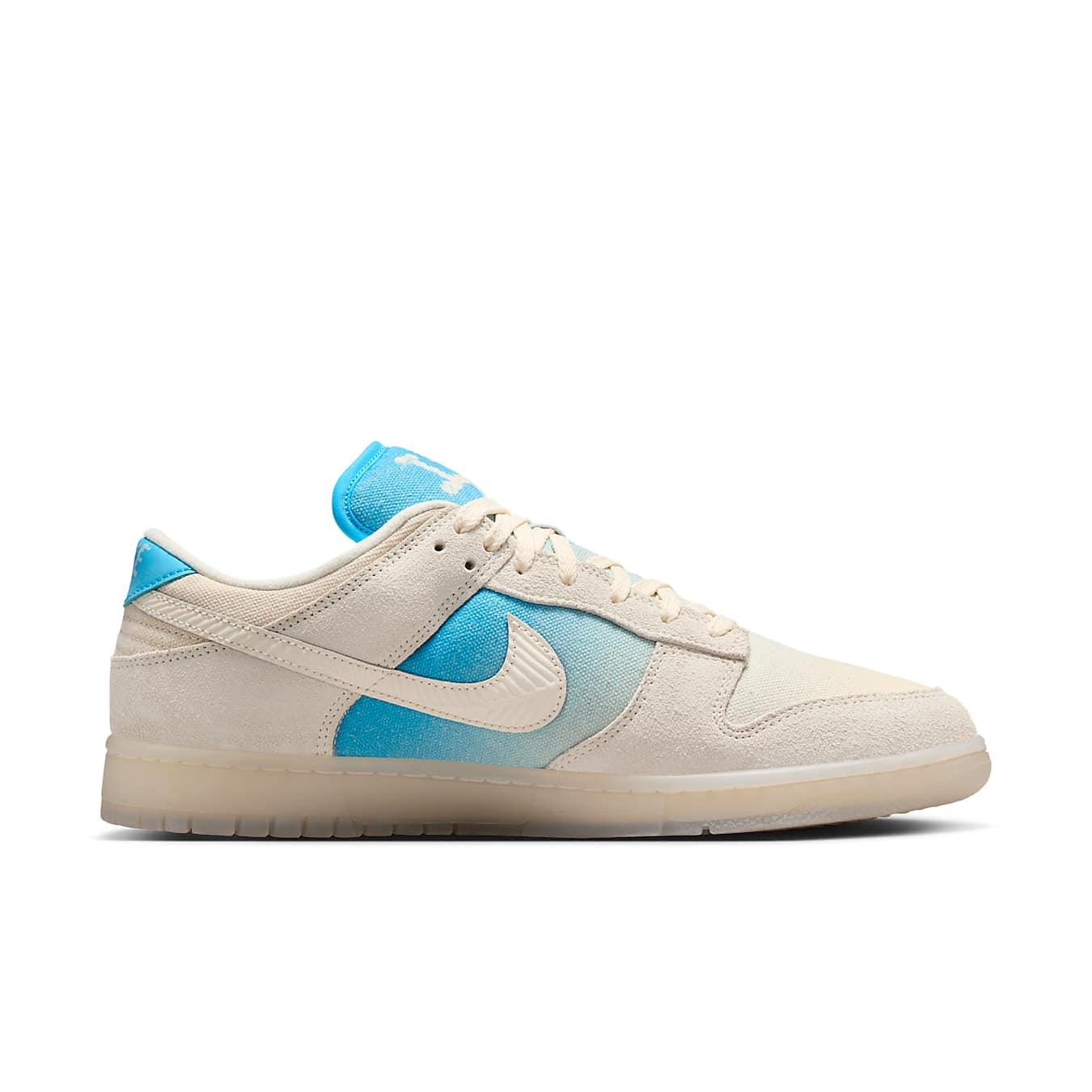 La Nike Dunk Low SE 'Los Angeles' celebra la vibrante cultura della Città degli Angeli. Questa sneaker low-top presenta una tomaia in tela color avorio, arricchita da sovrapposizioni in suede tono su tono sull'avampiede e sul tallone per un look raffinato e testurizzato. Una sfumatura blu a gradiente esalta il pannello laterale in tela e la linguetta, decorati con una grafica eterea 'LA' che richiama l'iconico skyline della città. Ulteriori dettagli includono uno Swoosh in pelle testurizzata e una scritta Nike morbida sul tallone in pelle blu. Il design si completa con una suola cupsole in gomma semitrasparente, che offre resistenza e un tocco moderno.