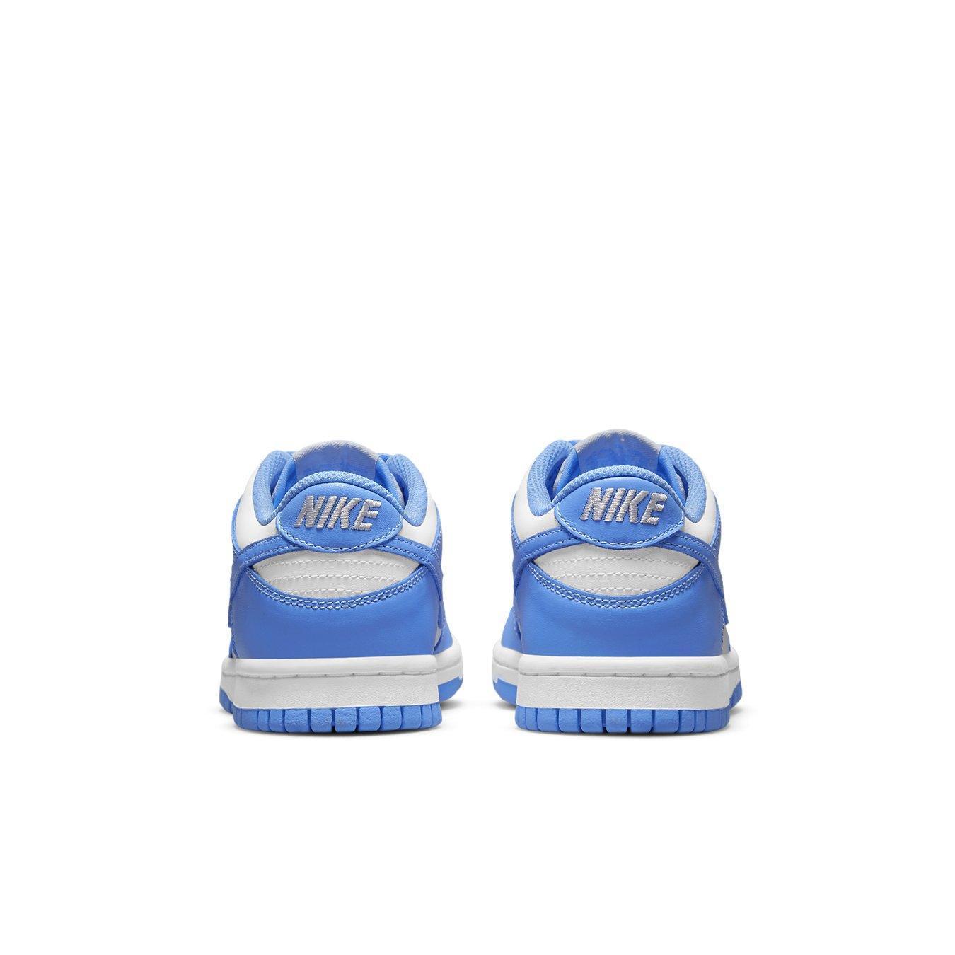 La Dunk Low GS 'University Blue' è una sneaker da scuola elementare bicolore. La parte superiore della scarpa è realizzata completamente in pelle ed è disponibile in un mix di bianco e University Blue, con perforazioni sulla punta per la ventilazione. La linguetta in nylon e il colletto imbottito offrono comfort, mentre l'intersuola bianca passa all'ulteriore University Blue sulla suola, che ha un design circolare per la presa.