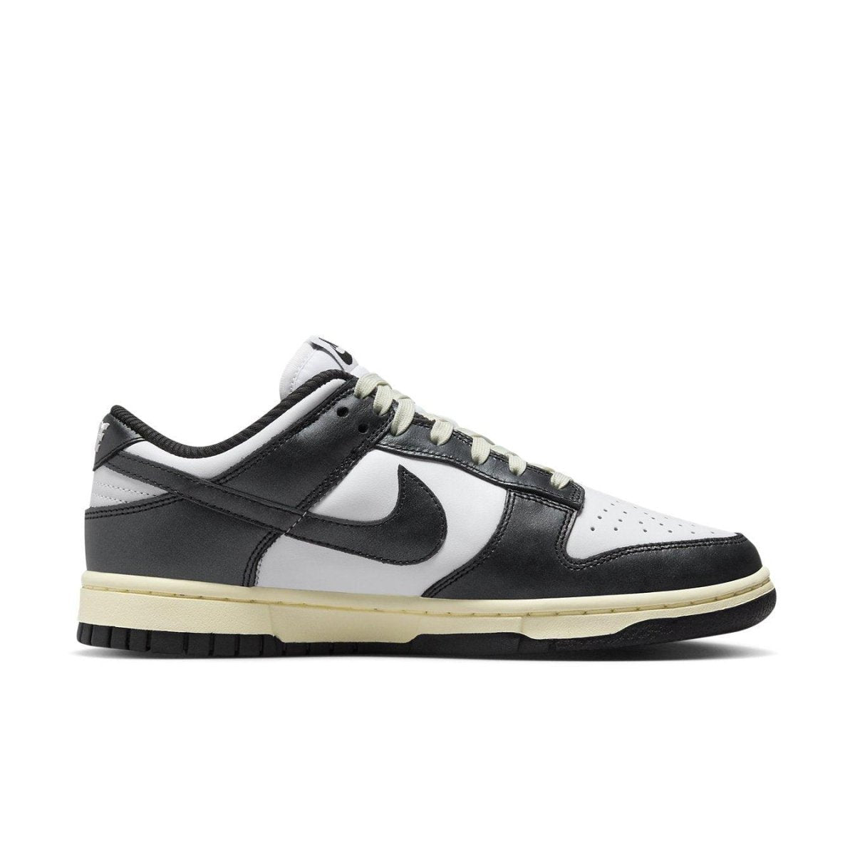 Le Nike Women’s Dunk Low ‘Vintage Panda’ abbracciano un aspetto classico e vissuto, particolarmente evidente nella suola intermedia di gomma che vanta una tonalità avorio vintage. Sul lato superiore, la silhouette retrò impiega una composizione in pelle elegante, enfatizzando una fondazione bianca immacolata contrapposta da sovrapposizioni nere decise e uno Swoosh dello stesso tono. Un'etichetta Nike tessuta adorna la lingua in nylon, mentre la linguetta posteriore è accentuata da un'iscrizione Nike meticolosamente ricamata. La sneaker è ancorata da una suola di gomma durevole, resa in una finitura nera profonda.