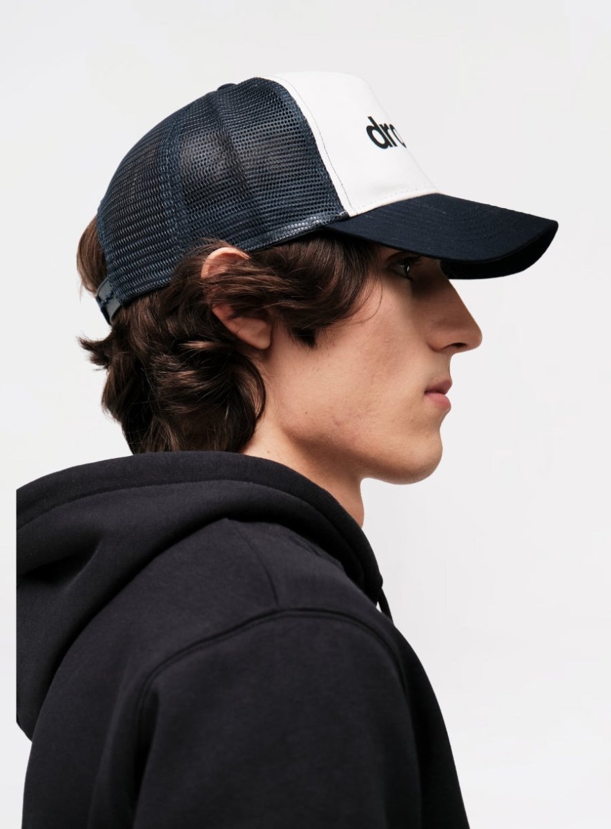 A cap that is comfortable and flatters your face. The Dropout Basics Trucker Cap in White/Navy is designed to complement your features while keeping you cool and comfortable. This carefully selected piece completes your casual look with a timeless touch. The clean white and navy design pairs easily with any streetwear outfit while keeping you cool and comfortable. The cap sits naturally and flatters round, oval, square, and heart-shaped faces alike, giving you a balanced and confident silhouette all day long.